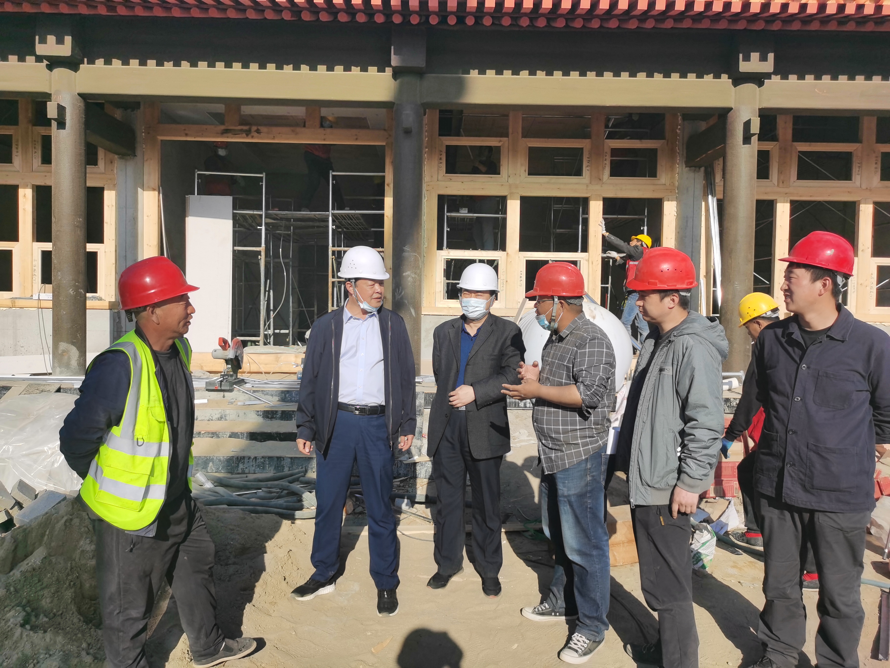 2021年5月1日,集團公司總經理徐俊儒、副總經理王京圍一行赴雄安郊野公園承德展園項目建設工地進行實地督導,并于當晚參加了建設項目調度例會。會上徐俊儒首先代表甲方向參與工程項目建設的監(jiān)理人員、項目管理人員、工程造價人員及山西二建、鴻博公司等各工種施工人員致以五一國際勞動節(jié)日的祝賀。