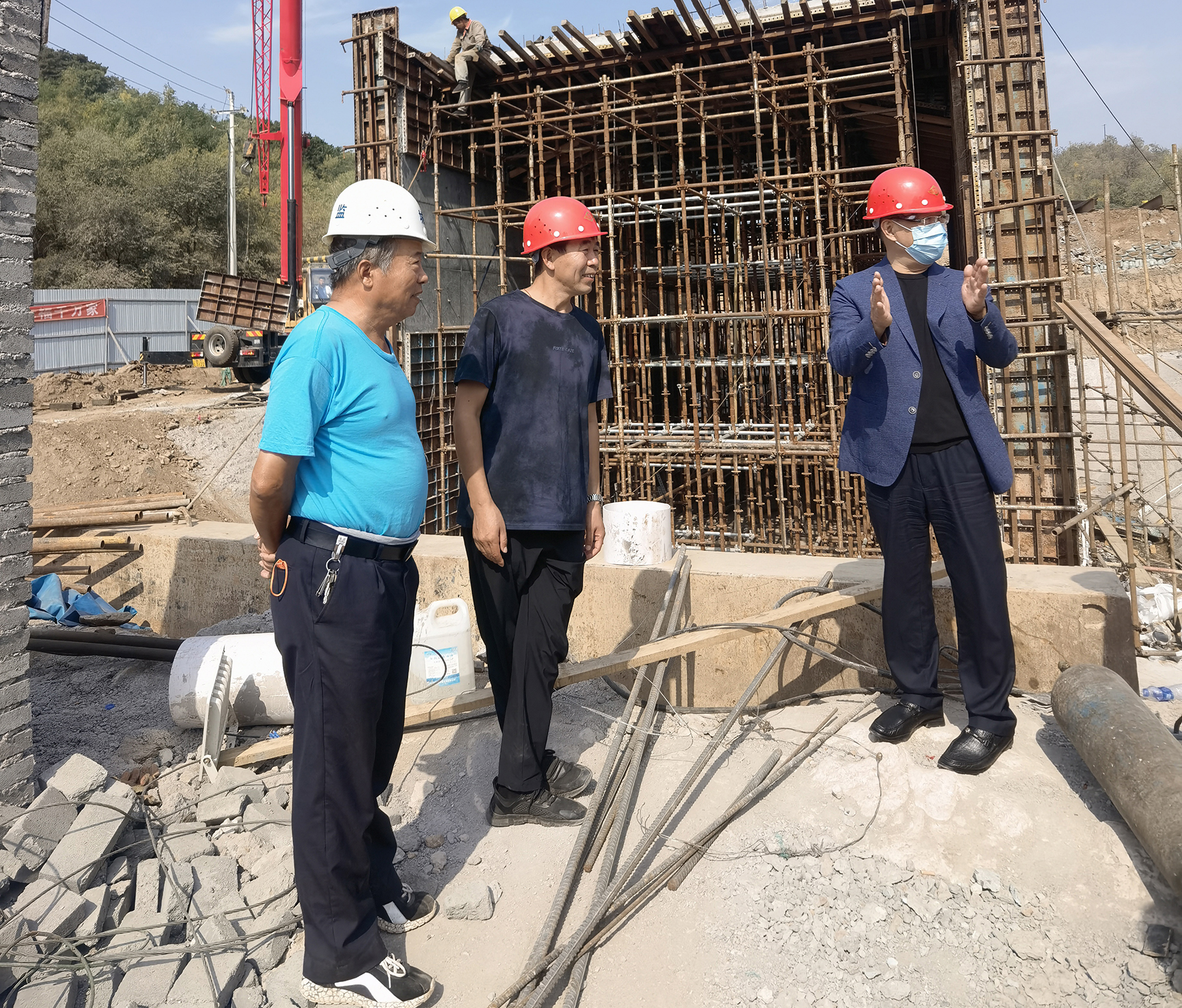 張建軍首先實(shí)地踏勘了市殯儀館和公墓項(xiàng)目建設(shè)現(xiàn)場,聽取了負(fù)責(zé)人匯報(bào),檢查了項(xiàng)目工地疫情防控措施落實(shí)和項(xiàng)目進(jìn)展等情況。他強(qiáng)調(diào),市殯儀館和公墓項(xiàng)目是重大民生工程,事關(guān)群眾切身利益,社會(huì)關(guān)注度高。要進(jìn)一步壓實(shí)責(zé)任,強(qiáng)化建筑工地安全規(guī)范管理,把安全生產(chǎn)各項(xiàng)規(guī)章制度落實(shí)到日常工作中,不斷加強(qiáng)安全警示教育培訓(xùn)和重點(diǎn)部位風(fēng)險(xiǎn)隱患排查整改,持續(xù)提升安全施工水平。要重點(diǎn)做好外地返崗人員“落地檢”,強(qiáng)化閉環(huán)管理,真正把疫情防控各項(xiàng)措施落實(shí)落細(xì),確保建筑工地安全穩(wěn)定。要加快施工進(jìn)度,嚴(yán)把施工質(zhì)量和施工安全關(guān)口,力促早日交付使用。