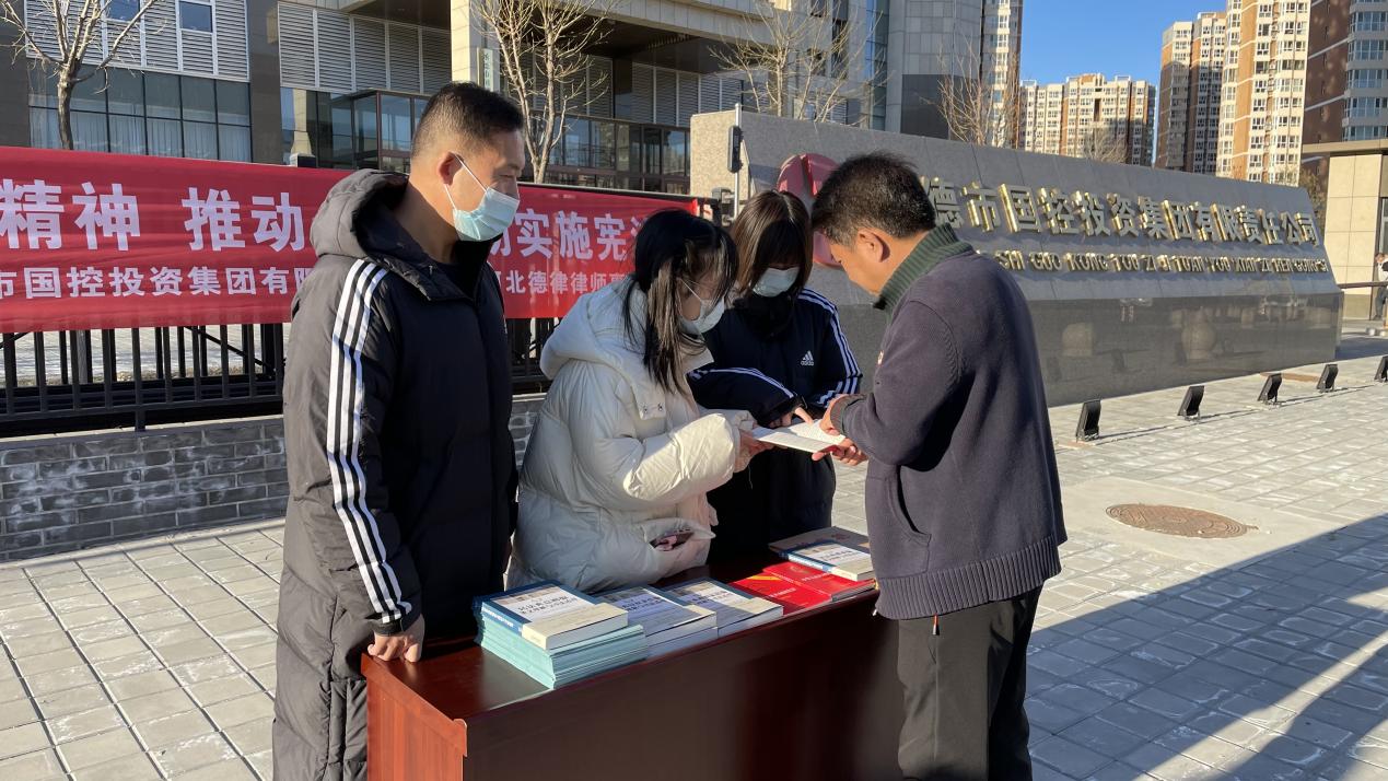 在線下,市國(guó)控集團(tuán)聯(lián)合公司常年法律顧問(wèn)——河北德律律師事務(wù)所共同開展普法宣傳活動(dòng)。