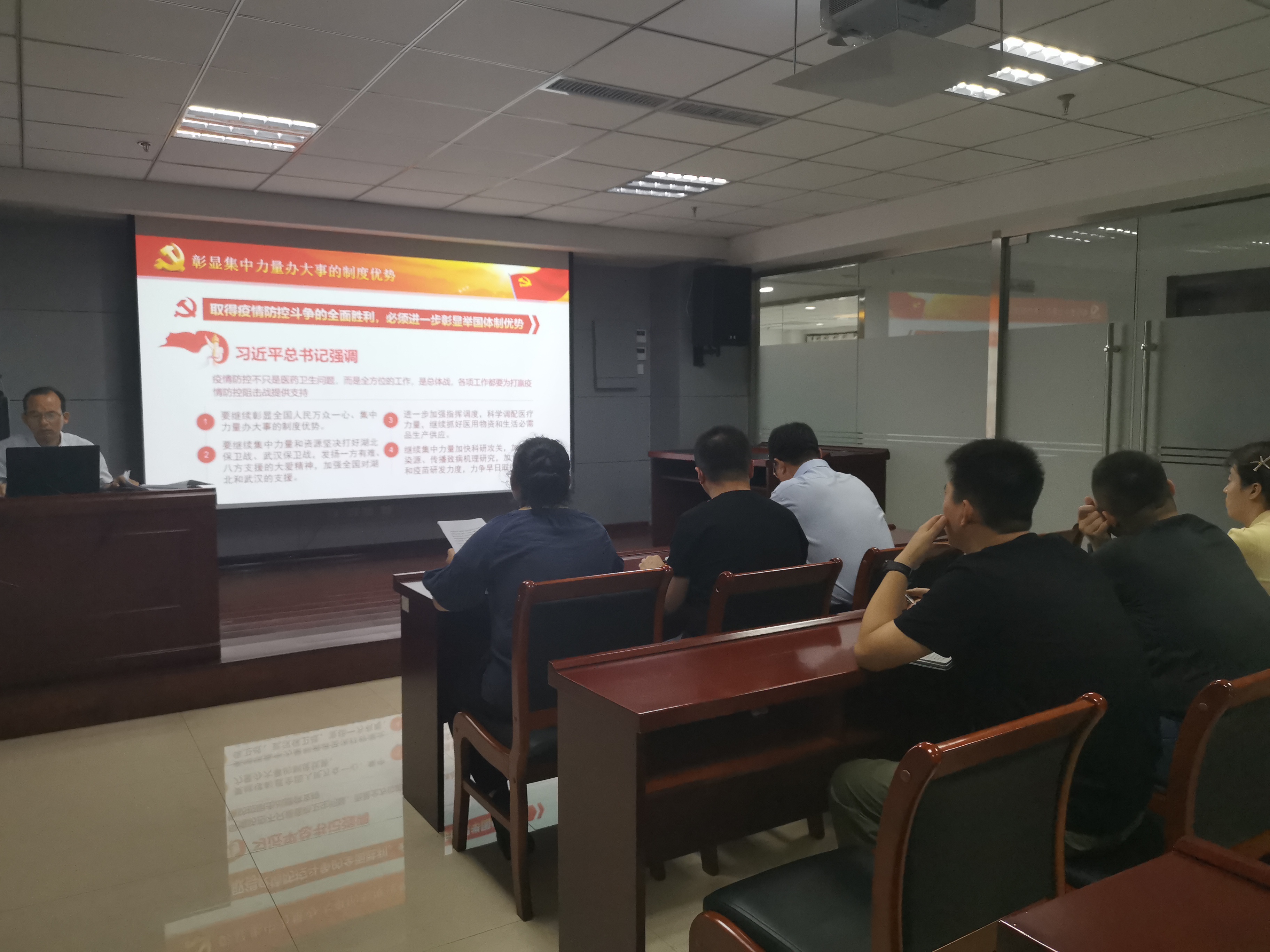 2020年7月2日上午,中共承德市國控投資集團有限責(zé)任公司第二支部委員會支部書記焦俊良同志以“在大考中彰顯中國特色社會主義制度優(yōu)勢”為題,為全體支部黨員和入黨積極分子上了一堂別開生面的黨課。