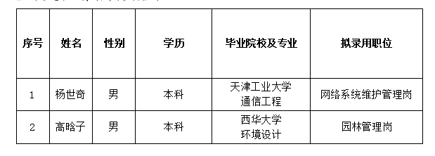 根據(jù)2023年度承德市國瑞置業(yè)有限責(zé)任公司公開招聘工作人員的相關(guān)要求,經(jīng)過筆試、面試、體檢和考察等程序,確定楊世奇、高晗子2名同志為承德市國瑞置業(yè)有限責(zé)任公司擬錄用工作人員,現(xiàn)予以公示?,F(xiàn)對擬錄用人員信息進(jìn)行公示,公示期間如有異議,可通過電話、信函等方式反映,反映意見請署真實(shí)姓名。