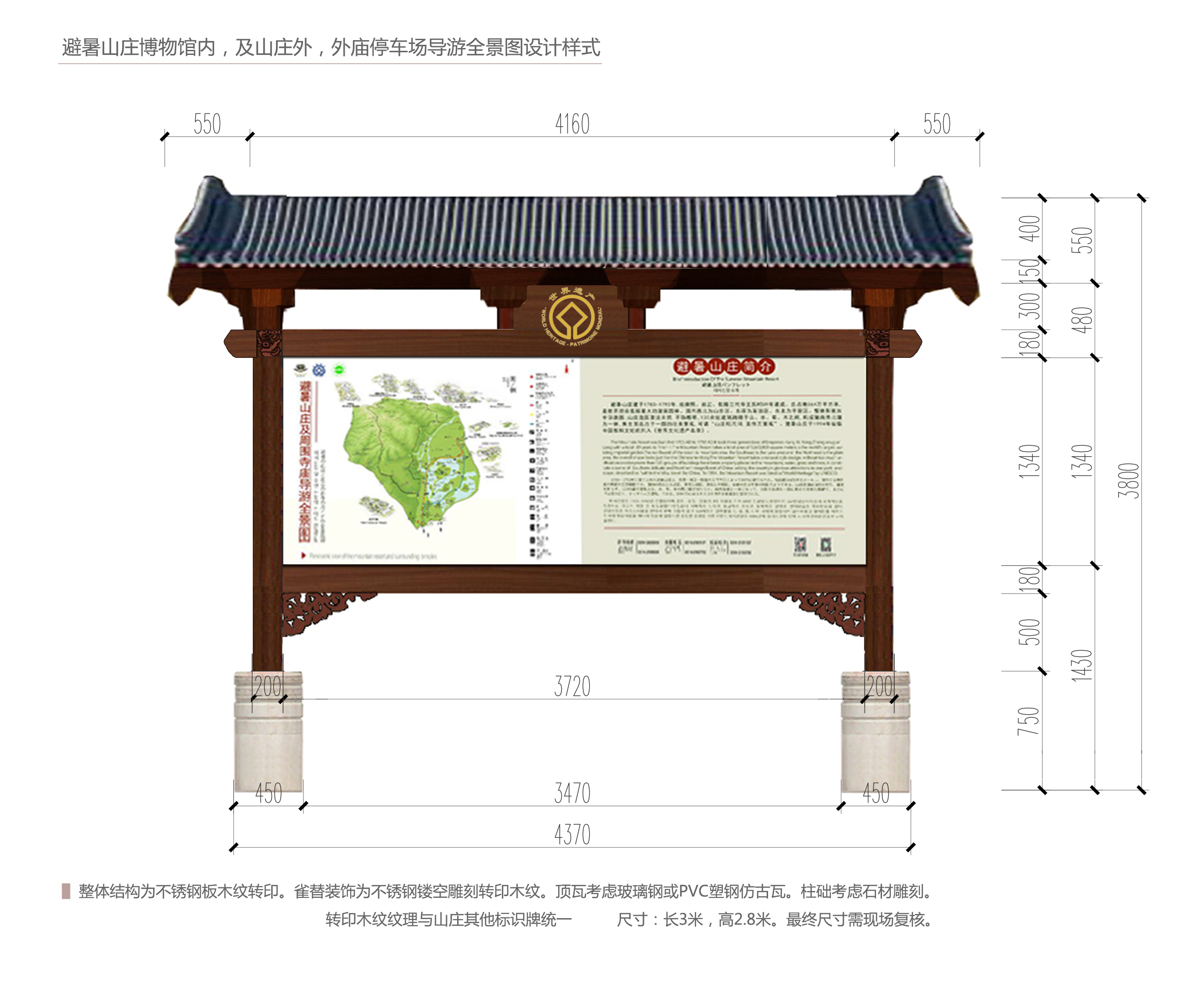 按照承德市人民政府辦公室印發(fā)的《避暑山莊及周圍寺廟景區(qū)整改提升專項(xiàng)工作方案》要求,在避暑山莊及周圍寺廟外5個停車場內(nèi),各設(shè)置景區(qū)導(dǎo)游全景圖1塊,由我公司邀請有資質(zhì)的單位進(jìn)行制作和施工,現(xiàn)將有關(guān)事項(xiàng)通知如下: